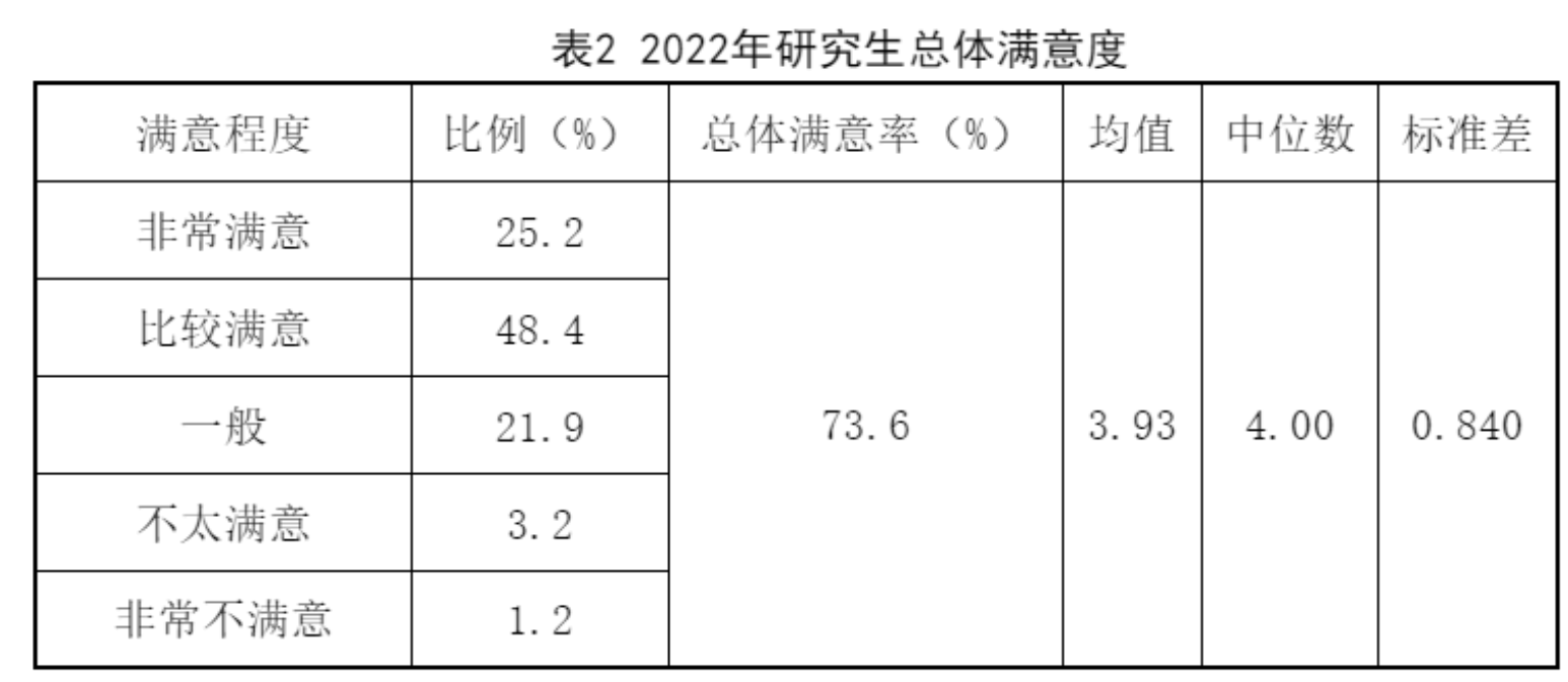 研究生对研究生教育的总体满意率为73.6%(见表2)。
