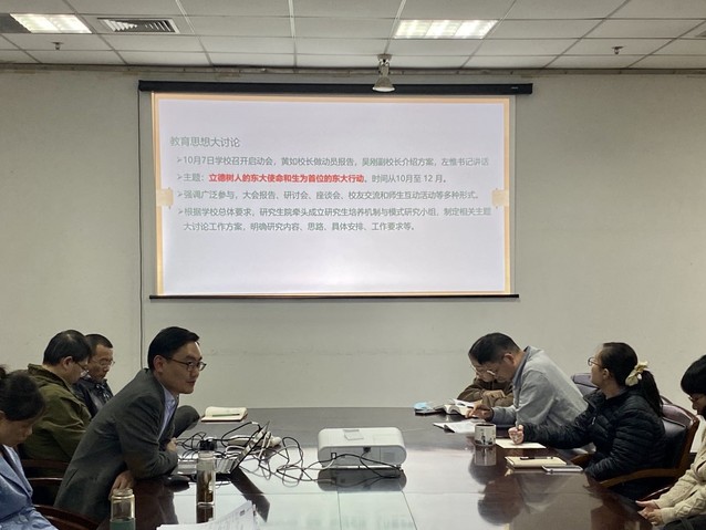2022年10月19日,东南研究生院组织召开了教育思想大讨论启动会。东南大学研究生院全体教职员工参加,会议由学校研究生院常务副院长耿新主持。